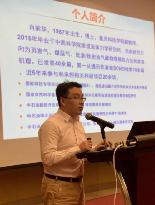 中海油能源发展股份有限公司工程技术分公司非常规技术研究院的刘成博士现场分享《鄂尔多斯盆地东缘致密砂岩气藏储层水赋存状态及气水识别方法 》。