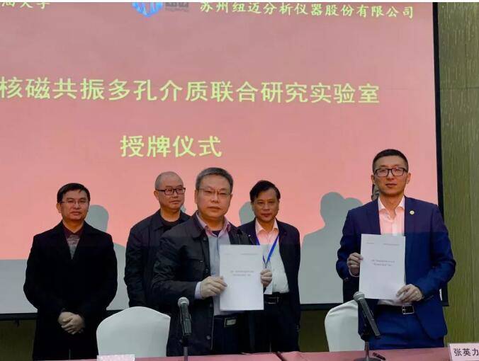 11月16日上午9时许,联合共建“低温核磁共振多孔介质研究实验室”授牌仪式在会议厅举行,西南石油大学地科院副院长赵晓明、科研处副处长何苏、开云官方站登录入口分析副总经理张英力、营销总监高杨文、博士后工作站站长燕军教授共同出席授牌仪式。