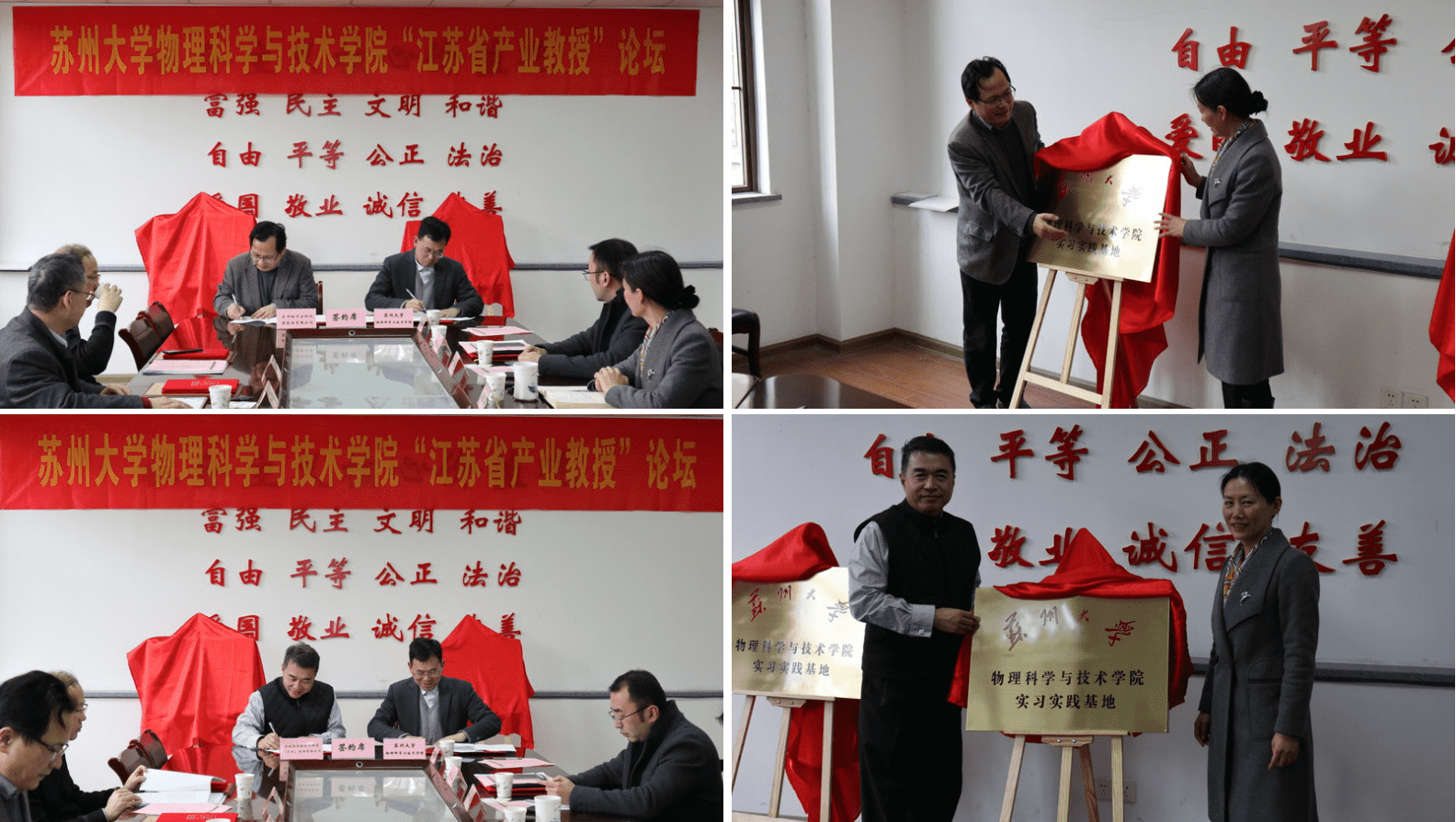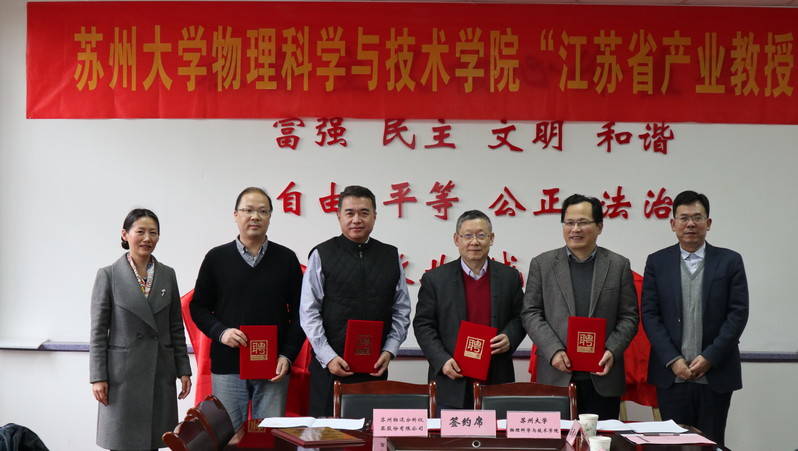 为感谢四位“江苏省产业教授”长期以来对学院人才培养工作方面的支持,高雷院长和孙德芬书记分别为四位产业教授颁发“苏州大学物理科学与技术学院‘学业导师’”聘书。