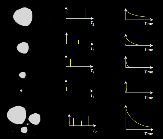 低场核磁研究的内容主要是物质的弛豫特性,即物质核磁信号的衰减快慢。通常,我们用弛豫时间来表示物质弛豫的快慢,弛豫时间越短,物质核磁信号衰减的越快。