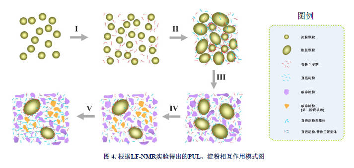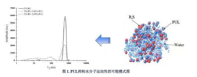 同时,PUL还可能与渗漏出来的直链淀粉相互作用,形成特殊的淀粉分子-胶体分子凝胶网络结构,并具有束缚水分子自由运动的性质(图1)。