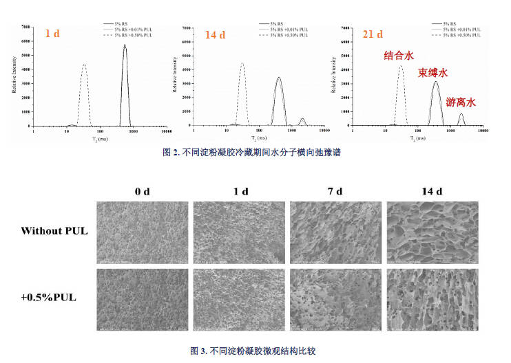 PUL的添加有效地保持了淀粉凝胶的完整网络结构,因而提高了持水性和凝胶冷藏稳定性。