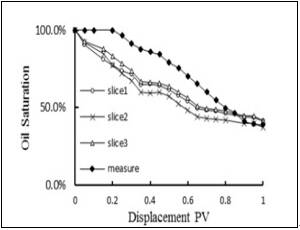 驱替过程整体信号逐渐变弱,第二层岩心的信号衰减速率大于第三层和第四层,与成像图相符。一方面可以利用核磁共振测试对样品内部驱替过程进行评价,另一方面,结合核磁共振成像技术,可对驱替过程岩心内部流体变化情况作直接了解。