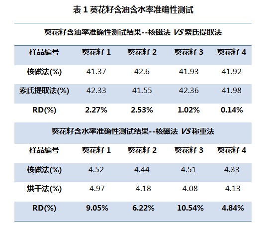 作为一项无损检测技术,基于弛豫时间检测的低场核磁共振在油料种子含油含水率检测领域,有完善的研究体系和成熟的成果,在农业食品业界含油率检测占有一席之地。目前已有国际标准ISO10565: 1995《油籽——油含量水含量同时测定——脉冲式核磁共振测定法》和国家标准GB/T 15690:1995《油籽含油量核磁共振测定法》。适用于含水量10%以下的油籽,如油菜籽,大豆,亚麻籽,葵花籽,芝麻,棉籽等。含水量高于10%的检测对象,需要在含油率测试前作烘干处理,使之含水率降到要求范围。