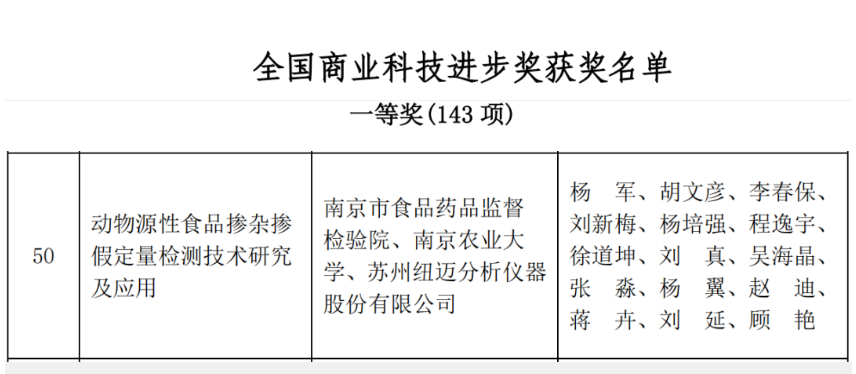 日前,“2022年度中国商业联合会科学技术奖”正式发布评选结果。苏州开云官方站登录入口分析联合南京市食品药品监督检察院南京农业大学共同申报的“动物源性食品掺杂掺假定量检测技术研究及应用”项目,斩获中国商业联合会科技奖一等奖。
