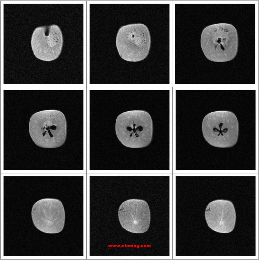 内部干裂的柠檬核磁共振多层成像图-T1加权成像