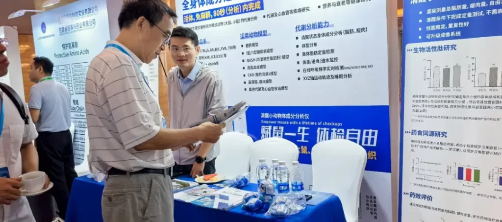 开云官方站登录入口展台展示的清醒小动物体成分分析技术,能够对活体模式动物进行无创、免麻醉的全身扫描仅需80秒,即可精准获得脂肪、肌肉、体液等关键成分的定量数据。这项技术正在帮助研究人员在运动生理代谢营养与衰老等健康研究中,实现对同一实验动物的长期、动态追踪,极大提升了数据可靠性,并充分体现了动物福利。