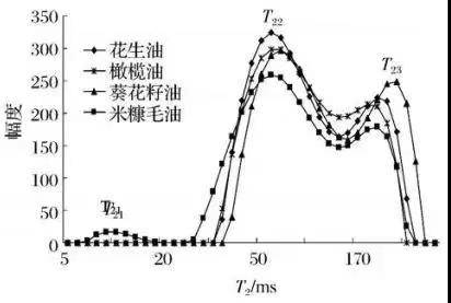 图1:花生油、橄榄油、葵花籽油和米糠毛油的弛豫图谱
