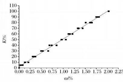 植物油掺米糠毛油曲线的回归方程为 : K/ % =48 .792 ω+2 .2831 K,掺伪量,%;