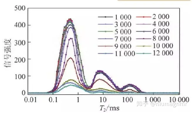 图3. 不同离心转速下的T2分布