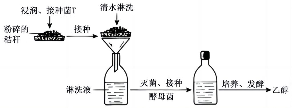 生物质转化为乙醇的步骤主要分为两部分:纤维素水解成糖,糖发酵成乙醇。生物发酵法生产工艺如下图所示[1] 。