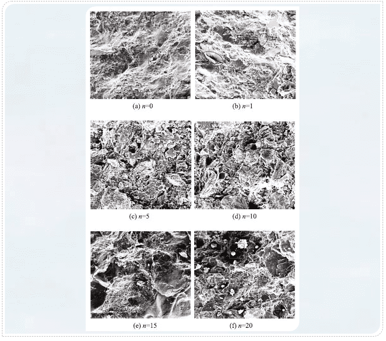 图5 不同干湿循环下泥质砂岩试件SEM图片