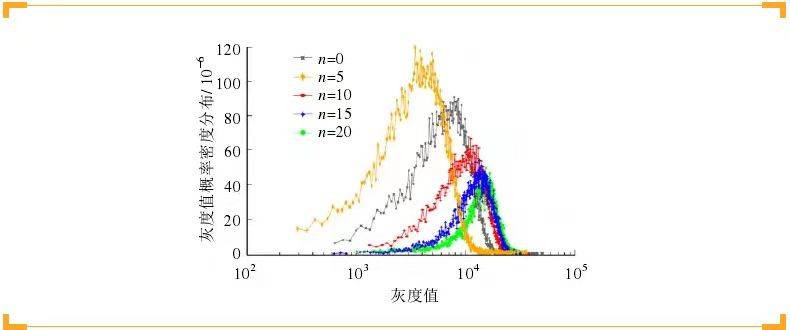 图6 不同循环次数的核磁共振成像灰度值概率分布片