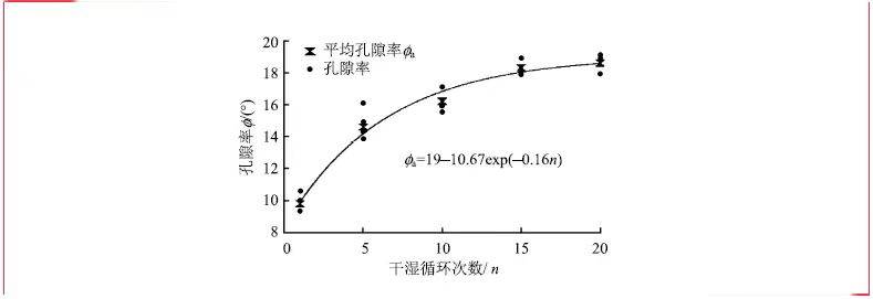 图3 孔隙率与干湿循环次数的关系曲线