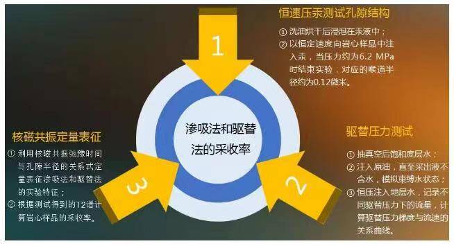 今天剖析的这篇文献通过NMR(核磁共振)与压汞测试手段,分析了渗吸与驱替两种状态下的采收率变化。样品采自延长油田的长8储层,是属于典型的致密油藏储层。具体的实验方法如下图所示。