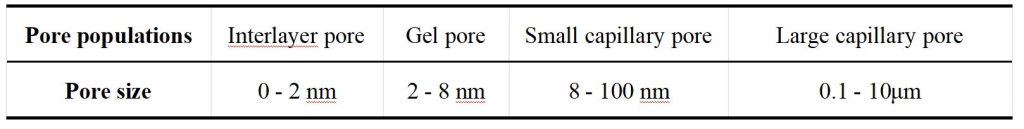 表1.硬化水泥浆体内部孔隙分类及孔径