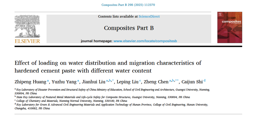 [1] Huang Z, Yang Y, Liu J, et al. Effect of loading on water distribution and migration characteristics of hardened cement paste with different water content [J]. Composites Part B: Engineering, 2025, 298: 112370.