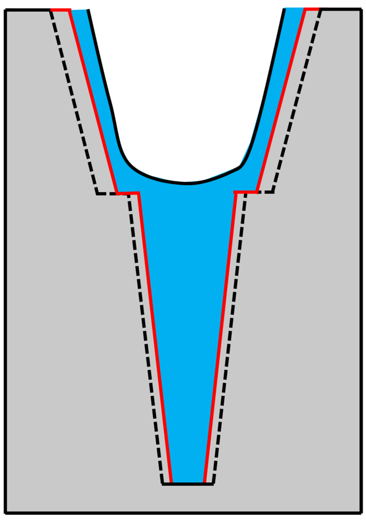 图10 外压力作用下孔结构的变化(注: 图(b)中的虚线为受压前孔壁的位置)