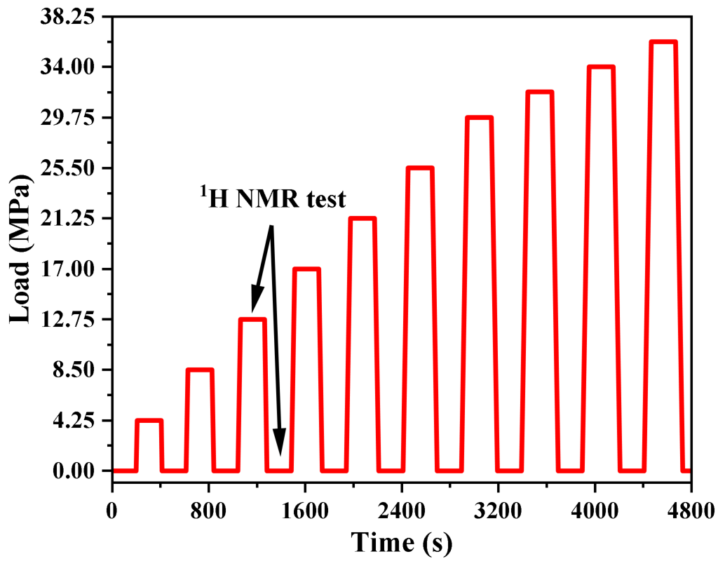 (4)按照图2所示的加载方式对HCP进行加载,达到指定的荷载值时保持恒压,随后进行1H NMR测试,一次1H NMR测试约200 s。测试完成后立即卸压,保持卸压状态对HCP进行1H NMR测试。