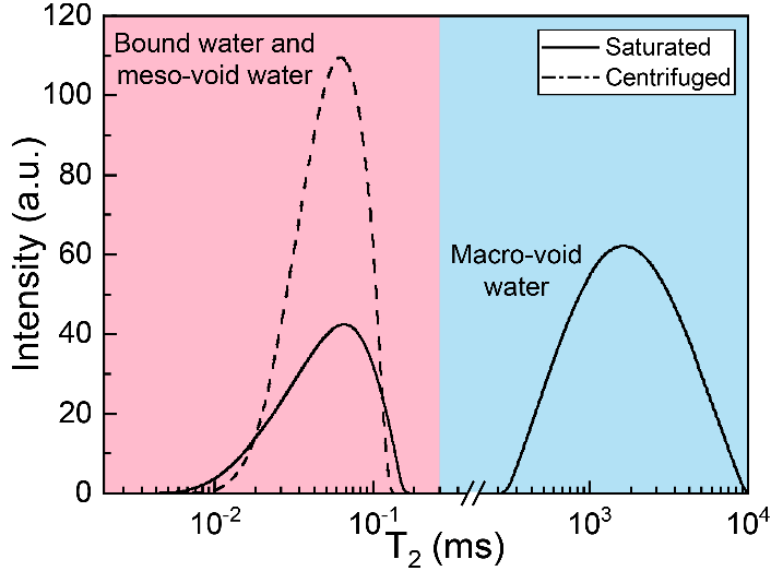 1. 未损坏的试样显示出三个明显的峰值,其中两个来自宏观空隙中的自由水。而两个损坏的试样没有出现中间峰值。