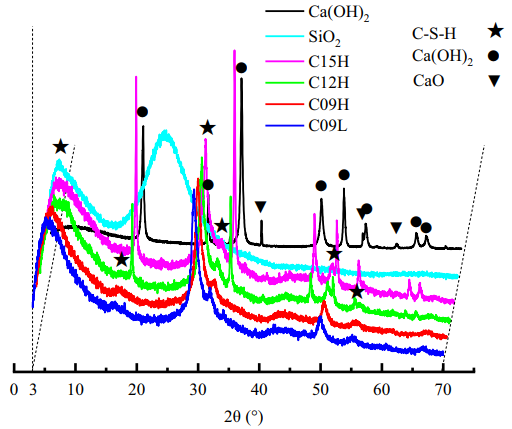 综上所述,所有的C09样品都可以被认为是纯C-S-H,而得到的C12H和C15H样品基本上是C-S-H和CH的混合物,其中C12H和C15H的残余CH分别占RH中平衡的样品质量的8%和16%。