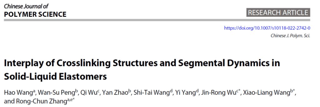 【文献解读】华南理工大学张荣纯教授等《CHINESE JOURNAL OF POLYMER SCIENCE》:固液转换弹性体交联结构与链段运动的变场核磁与流变学研究