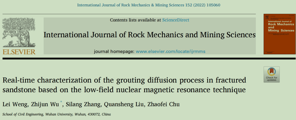 本期为大家解读并推荐的文章,是2022年发表在中科院大类一区期刊《International Journal of Rock Mechanics and Mining Sciences》上,来自武汉大学吴志军教授和翁磊副研究员团队,主要内容为裂隙砂岩渗透注浆过程的实时核磁共振表征。