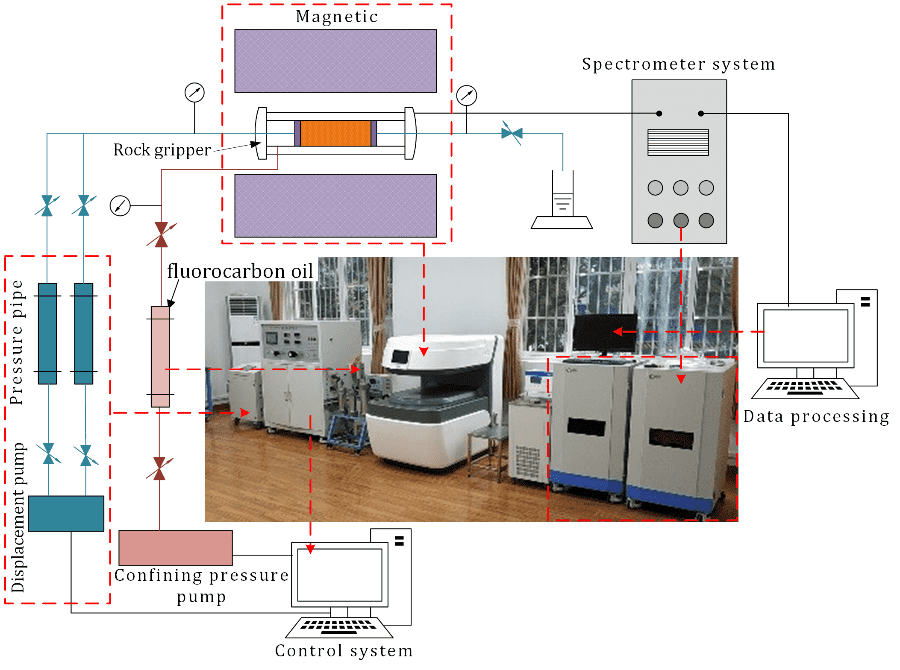 本篇论文中所用的MacroMR12-150H-1型低场核磁共振岩石渗流过程实时在线分析与成像系统,搭配了高温高压驱替系统,主要用于流体渗流过程、气-液两相驱替过程研究,本篇文章主要使用了一下功能: