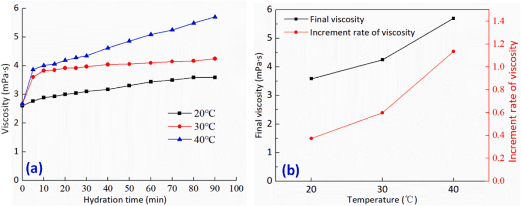 图3 不同温度下浆液黏度随水化时间的变化曲线