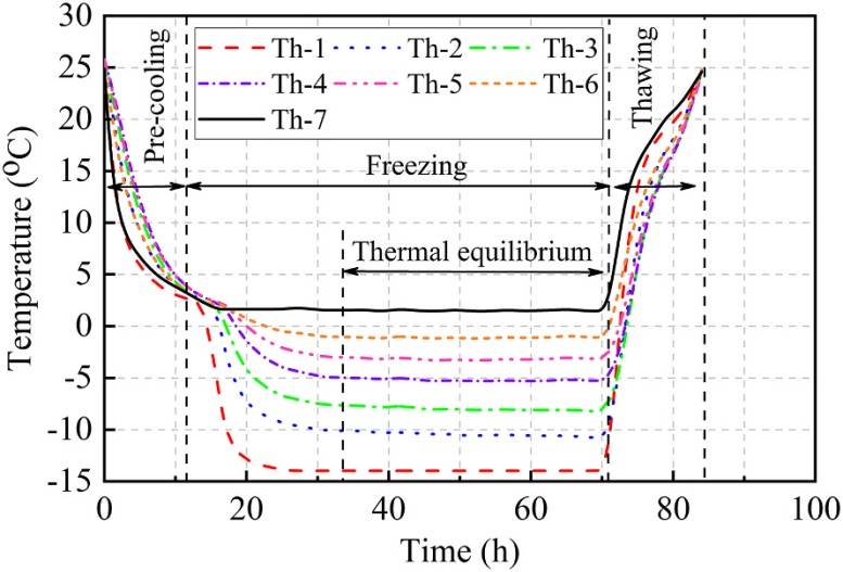 3.冻结过程持续了60小时,以达到热平衡,使得每个监测点的温度稳定下来。