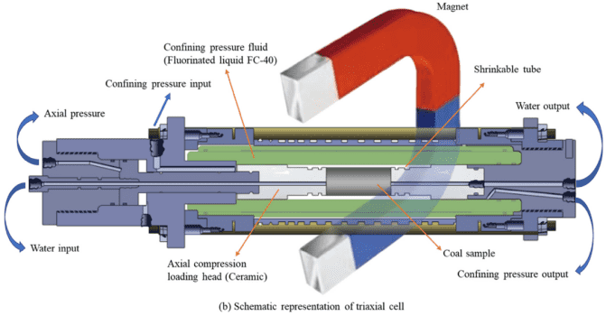 在这项研究中,一个纯钛加载腔和陶瓷加载头被用来进行三轴加载试验,在三轴加载过程中进行在线核磁共振测量。