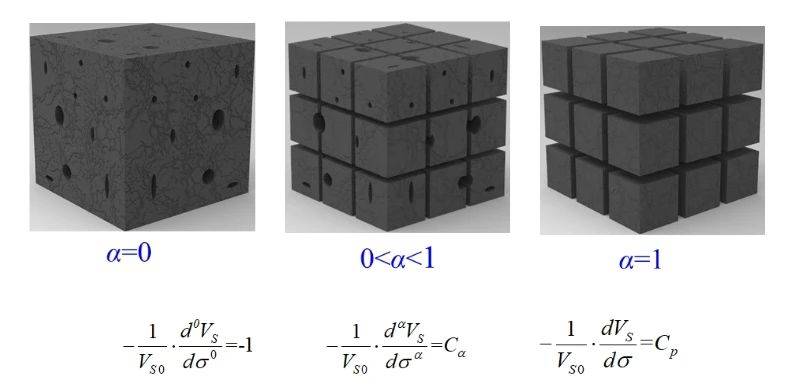 α=0时,仅含不连通的孔隙,渗流孔的体积与偏应力的零阶导数成正比;