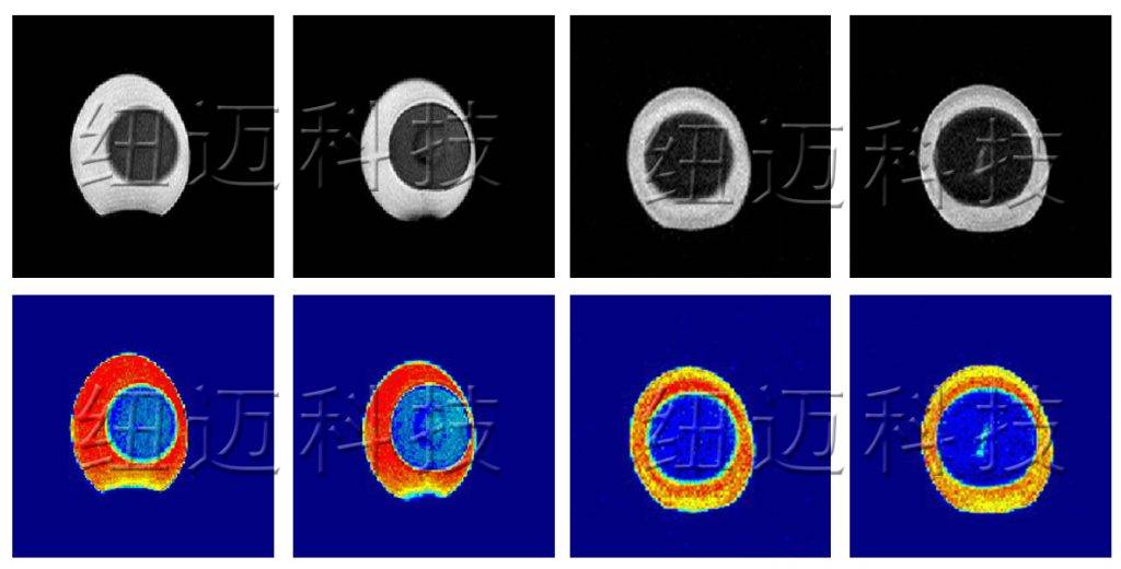 对两种鸭蛋蛋黄进行成像分析,因为核磁无损、无任何前处理的优点,蛋黄成像采集完整鸭蛋的图像(选层厚度4.9mm)。